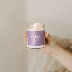 Sweet Water Decor Relax Girl Violet Label 9oz Clear Jar Soy Candle