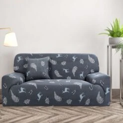 PiccoCasa Sofa Cover 1-4 Seater Leaves Pattern Polyester Spandex Slipcovers 1 Pc