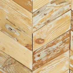 Teak Wood Geometric Handmade Chevron Panels Wall Decor With Distressing Brown – Novogratz