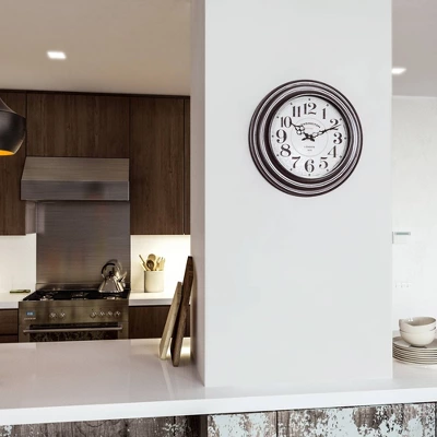 You have amazing taste around the clock and it shows when you add this Yosemite Circular Iron Wall Clock to your home. With a sturdy hardwood face and a metal frame, this clock has a sophisticated black and white motif. This wall clock combines just the right amount of distressing with subtle scratching on the white face with a bold black frame. Just under 17” in diameter, this quartz clock is easy to read, with bold black numbers and hands that point to the hour and minute.