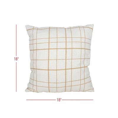 A neutral pillow offering a modern take on the traditional windowpane plaid style. The 18” square size is perfect for layering. The minimalistic plaid is both neutral and welcoming. With soft tones of tan and cream, this pillow will easily transition from season to season. Handwoven by artisans in India.