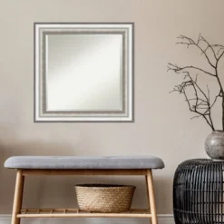 - MIRROR DETAILS: This mirror features premium glass for a clear, undistorted image and is finished with a beveled edge to give the glass a decorative touch. The overall size of this wall mirror measures 25.25 x 25.25 inches, including the frame. Its reflective area measures 20 x 20 inches.
