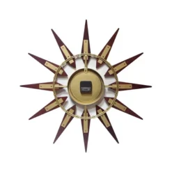 Dial back to the turn of the century and you’ll quickly realize why this oversized Orion wall clock is bursting with bounds of style. Inspired by midcentury designs yet given a modern twist, this starburst wall clock has been balanced for versatility. The rustically rich shade of natural walnut wood and the luxuriousness of golden brass metal hardware fuse together to yield a piece that is decoratively indicative of the craftsmanship for which these ancient times are revered. Although it is often displayed in homes with a medieval aesthetic, our radiantly large wall clock has a unique way of blending in with all kinds of home or office décor.