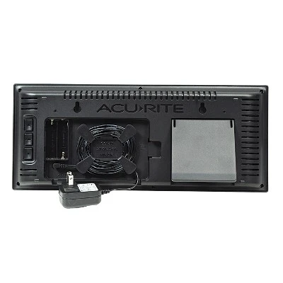This AcuRite 14.5-inch Large Digital Clock is perfect for any home, office or classroom. It’s also a great calendar clock for elderly or Alzheimer’s clock. The extra-large day clock’s screen features bold, 4.25-inch tall, easy to read numbers. Displays today’s date and current indoor temperature. This clock is powered by a 9-foot power adapter and features cord storage to secure excess cord. Integrated keyholes for easy wall-mounting and sits upright for tabletop use with its fold-out stand.