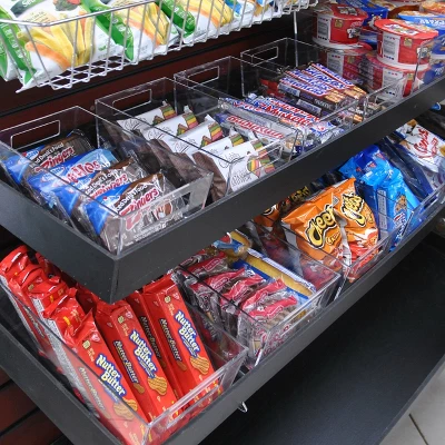 Azar Displays sleek multi-purpose tote bins are perfect for any organization project or point of purchase sale. The crystal clear plastic allows for easy viewing of contents inside. The transparency of these deluxe storage bins complement any surrounding. The wide angled opening allows for ease of use making items accessible. These quality bins are durable and functional with two slotted side handles as an added bonus. Carry and move your items and valuables to different locations with ease. Use in your office to organize drawers, craft room, kitchen pantry, closet, stock room, school, or anywhere you want a clutter-free and organized space. Azar’s deluxe bins can also be used as a merchandising solution for loose products near the cash wrap or for impulse buys in boutiques, museums, trade shows, at an event, or retail store. Sold in Packs of 4. Available in 4 different sizes. Sold in Packs of: 4 Material: Styrene Measurement: 11.25W x 7.5D x 5H Color: Clear