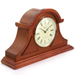 This exquisite Mantel clock features a mahogany cherry oak finish case. Rich and deeply colored it is timeless and exquisite. The dial is bright and perfectly brings forward the roman numerals for your ease. This classic Mantel clock is a stunning addition to any room, whether it is above a fireplace or on a desk. Has 4 chime settings and volume control.