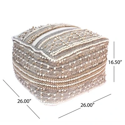 HANDCRAFTED BOHO DESIGN: Our handcrafted poufs are expertly designed and made using a centuries-old method. Any natural variations are not product flaws, but rather, will ensure that your purchase is of a truly one-of-a-kind product. With a tufted crisscross design in beige and white, this lovely pouf is a perfect accessory for any home.