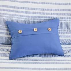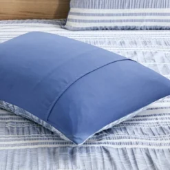The Cameron Striped Comforter Set offers a chic casual comfort to your bedroom. This comforter features a modern stripe pattern that has a ruched and yarn-dyed look to create dimension, for a contemporary style. A solid reverse pairs handsomely with the top of the bed. The 2 matching shams (1 in Twin/TwinXL) repeat the design of the comforter, while 1 decorative pillow provides the finishing touch. This striped comforter set also has an antimicrobial treatment helps reduce the growth of odor causing bacteria and keeps fabric lasting longer. Items in the set may come in a rolled or compressed packaging, which will need to be fluffed up or steam ironed before use to remove wrinkles.