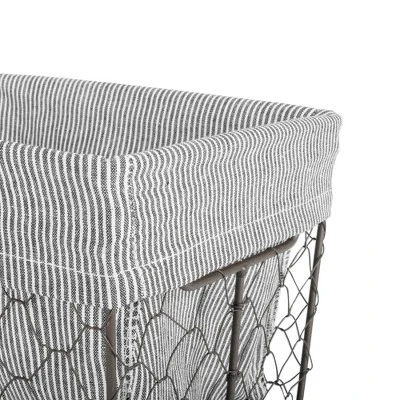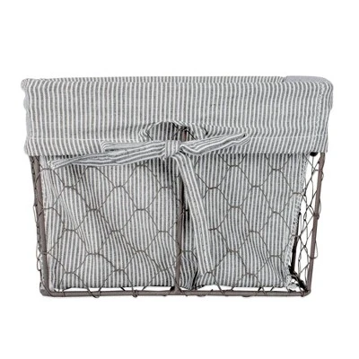 Experience vintage-inspired style with our carefully crafted wire baskets. Made from antiqued finish chicken wire, these baskets exude a charming vintage look. The sturdy frame ensures durability, while the removable machine washable fabric linings provide convenience. These versatile baskets are perfect for storing books, magazines, fashion accessories, hand towels, arts and crafts supplies, and more. They can be placed on closet shelves or used to organize under-the-counter bathroom essentials. Not only are they stylish, but they are also food safe, making them excellent storage containers for kitchen utensils or pantry items. The rustic appeal of these baskets makes them an ideal housewarming gift. The removable cotton-poly blend liners are washable, ensuring that the baskets maintain their size and shape. Whether in kitchens, playrooms, linen closets, or bathrooms, these baskets offer a wide variety of stylish organizational storage options.