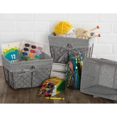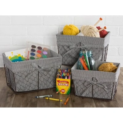 - Set includes 3 wire baskets with removable liners. Measures 9x7x6 inches.