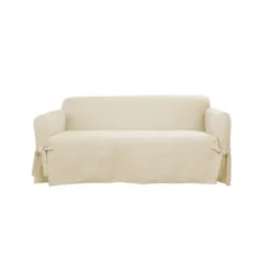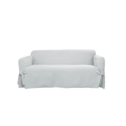 Add a new look and great protection to your furniture with the Sure Fit Farmhouse Basketweave slipcover. These slipcovers have front adjustable ties and an elastic band that give a custom fit. The heathered faux linen farmhouse look complements modern, contemporary and rustic decor. 100% polyester and machine washable. Best fits furniture 58-73″ wide outside arm to outside arm, 30-40″ high, 32-42″ deep.