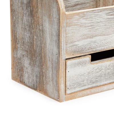 - Stay Organized in Style: This sorter helps keep your mail, notepads, pens, and pencils in 1 place, and its rustic-style design has a distressed torched wood finish