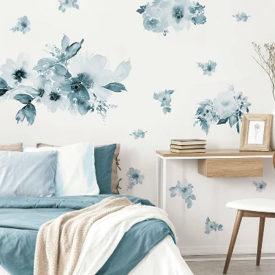 Pretty watercolor florals are a soft and inviting way to add beauty to walls with RoomMates Blue Watercolor Floral peel and stick wall decals. Peonies, roses, hibiscus, poppies and leafy stems graduate in color from lake blues and soft teals through indigo. Perfect to coordinate with white and natural woods and de cor schemes from sparkling whites to deeper tones, wherever subtle effects are desired. RoomMates wall decals are an easy and affordable way to decorate in minutes. Reposition or remove them effortlessly with no remaining sticky residue or damage to walls.