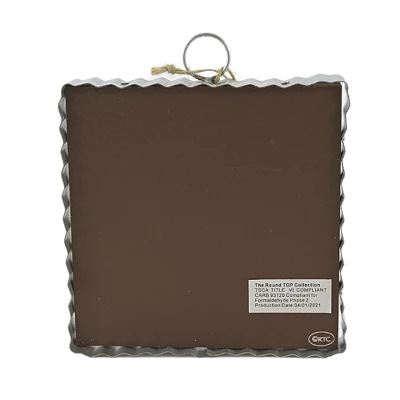 Small Square Sign With A Blue Background. A Black Crow Stands On An Orange Jack-O-Lantern Stem. Behind The Crow Is A Full Blue Moon.. New. Measurements 7 In H X 6 In W X 1 In D. . No Assembly Required. Indoor Use Only. Imported