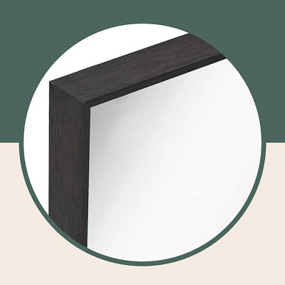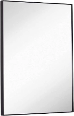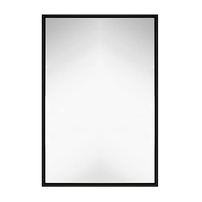 Hamilton Hills offers a modern rectangle mirror with a classic design. The black brushed metal finish has a 1 3/8″ depth and a tiny 1/4″ front edge. The mirrored plate glass is set back 3/8″ from the front. Dual orientation hanging hardware, wall hardware, and screws are included for easy installation. This high-end product is made with premium materials and tested to strict trade-secret standards. The contemporary frame adds a modern touch to any bathroom, fitting into any modern or traditional style space.