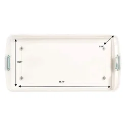 - SPECIFICATIONS: Material: Plastic; Color: Clear Base, Red Lid, Green Latch; Dimensions (L x W x H): 40.00 x 20.00 x 6.12; Weight: 7.25 pounds