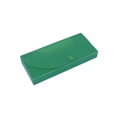 JAM Paper Snap Button Pencil Cases are a great way to keep your pencils, markers, pens, or other writing instruments neat and organized. These pencil cases are made from smooth translucent plastic and include a button snap closure to ensure your items stay safe and in place. Dark Green Pencil Case. Case Size: 7.75 x 2.75 x 1.125 inches. Quantity: Sold Individually. These Pencil Cases feature a Button Snap Closure and are fashioned from smooth durable plastic!. A Perfect way to keep all your pens, pencils, and office supplies organized at your desk whether in school, at the office, at home, or on the go!. JAM Paper Dark Green Snap Button Pencil Case measures 7 3/4 x 2 3/4 x 1 1/8 inches in size, are made out of smooth and durable plastic, and feature a twill finish. These pencil cases open on the longer side and have wallet style flaps with secure button snap closures. The dark, forest green color of these pencil cases stand out and bring a verdant highlight to your office or work space! Sold individually, these pencil cases are great for carrying and storing pencils, paintbrushes, pens, erasers, and other art and writing supplies! Their hard plastic exterior will keep all stored items safe from dirt and damage. Keep track of your writing utensils with these dark green pencil cases!. Sold as 1 Each.