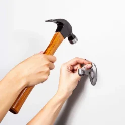 -The Fast Fit Jamey 5/8″ Easy Install Decorative Window Curtain Rod by Kenney is as easy to hang as a picture frame. Position the innovative brackets onto the wall and tap the included nails into place. Using nails instead of screws leaves less damage behind on the wall. The easy installation doesn’t sacrifice performance, as the Fast Fit curtain rod provides excellent support, up to 25 pounds.The telescoping metal rod adjusts from 36 inches to 66 inches or from 66 inches to 120 inches to fit your window and projects 3 inches from the wall. A 5/8 inch diameter curtain rod is recommended for use with light to medium weight curtains in your bedroom or living room.Drapery Hardware Set Includes: one telescoping steel curtain rod with decorative finials (2.52″ L x 2.08″ W x 2.08″ H), two brackets, one center support, nails, measuring template, and installation instructions.