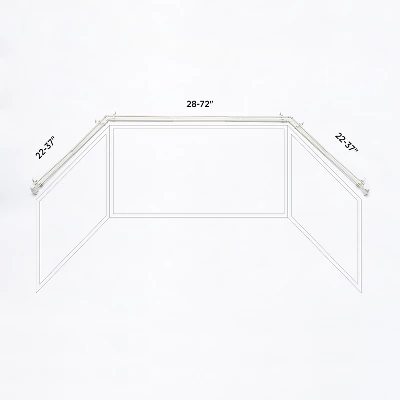 - 3/4″ diameter bay window curtain rod adjusts in the center 28-72” and on both sides 22-37” and projects 2.8” from the wall