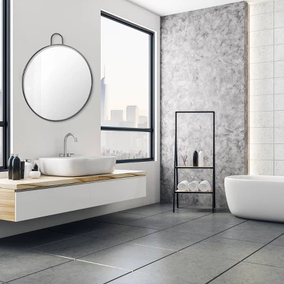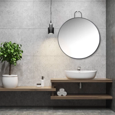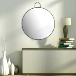 Instantly enhance any wall in your home with Stonebriar’s 30″ round metal decorative wall mirror. This decorative mirror features a smooth matte painted metal frame, and the glass mirror comes with a crystal clear reflection. Mirror measures 34.3-inches in height and 30-inches in width in total. Glass mirror section measures 28.9 inches in diameter. It is the perfect size to use as a vanity mirror in the bathroom or as an accent mirror in the living room, bedroom, hallway, and entryway. This decorative mirror comes with a sturdy metal hanging loop and an attached keyhole hanger on the back. It is easily installed with a wall hook or screw (not included).