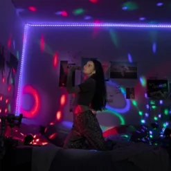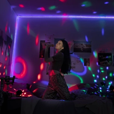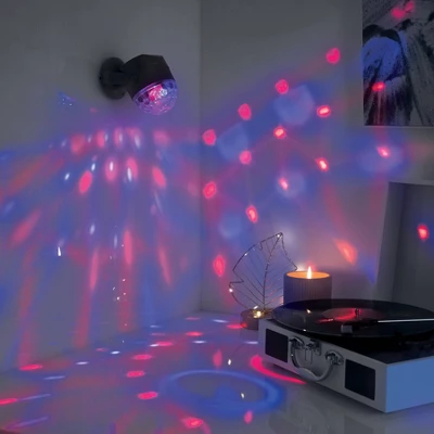 Feel good vibes with this music reactive LED Party Projector from West & Arrow. Set up and power on for instant rotating lights and color changing effects. Built-in suction cup for mounting on walls, ceilings and more. The 180° adjustable knob allows total directional control of the LED projector. The perfect projector light for your room, party and more!
