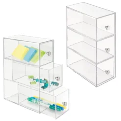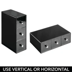 Streamline and declutter office spaces with the Three Drawer Storage Drawer Organizers from mDesign. Each organizer has three drawers that can be used vertically or horizontally to create a neat and tidy workspace personalized to your space. Use it in the office, at school, in your art studio, or in a garage work shop. Keep all of your office supplies organized and easy to find. These versatile drawer organizers are great in any room of the home.