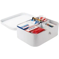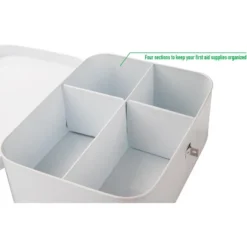 - DISTINCTIVE LOOK – The glossy white coating and large red cross adorning the lid of this first aid supply container (supplies not included) makes it easy to spot among your personal belongings