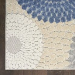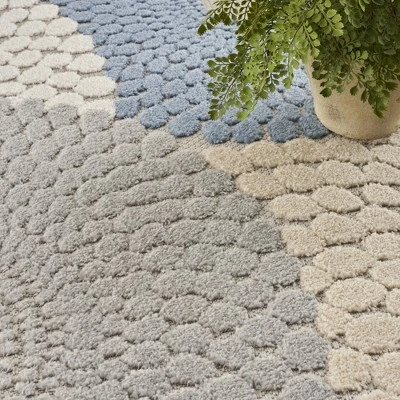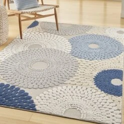 Liven up your space with the bold geometric design of this outdoor rug from the Aloha Collection. The overlapping circular tear drop pattern is enhanced by a soft, raised texture that stands out against its flatwoven ground. With a versatile, easy to clean construction, this contemporary rug beautifully complements your indoor and outdoor spaces including the living room, dining room, hallway, deck, and patio.