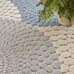 - Flat weave with raised, cut patterns for a delightfully textured feel