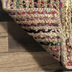 Brighten your room with this distinctively vivid braided bohemian rug. Hand crafted in India of jute & cotton, each piece carries with it a variation in color and pattern unique to the artisan who wove it. Because of the handmade nature of these rugs, no two will look exactly alike. Create the unique bold environment youve always wanted with our easy to care for area rugs.