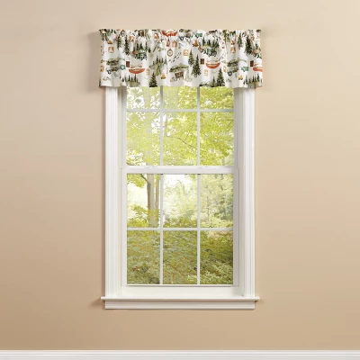 Top off your window with a variety of camping activity motifs on a white background. The rustic touch captures the beauty of outside fun inside the comfort of your home with this ruffled window accent. Add this piece to your space to introduce a fresh look without having to redecorate the entire room.