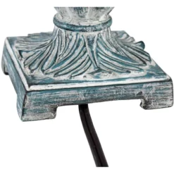 - Antique blue finish. Resin construction. Traditional candlestick inspired frame.