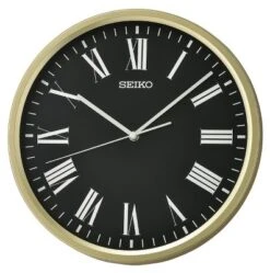 The Sano wall collection highlights 12″ round classic wall clocks with metallic colored frame. Available in metallic gold, metallic black, silver or metallic silver. Each minimalist modern clock is easy to read. Powered by 1 AA battery (included) and measures 12.00 x 12.00 x 1.77 inches. All Seiko clocks are equipped with quartz movement making it the most accurate at time keeping.