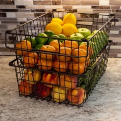 - SET OF 2 BASKETS – This storage basket set comes with 2 wire baskets for closet, bathroom, pantry, and kitchen organization. The bathroom storage bins are stackable to save space, perfect for small kitchens, apartments, dorm rooms, or RVs.