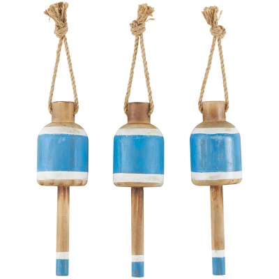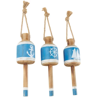 - Set of 3 buoy inspired décor is crafted from a combination of wood and rope material for a sturdy and lasting design