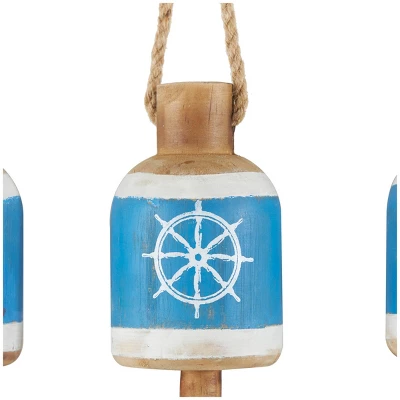 Hang this coastal wooden décor set in a living room or bedroom corner, and pair it with a brown woven chair for a relaxed reading moment. This item ships in 1 carton. Wood wall decor makes a great gift for any occasion. Can be hung vertically using the jute rope; nails and screws not included. Suitable for indoor use only. This item ships fully assembled in one piece. This blue colored wall sculptures comes as a set of 3. Coastal style.