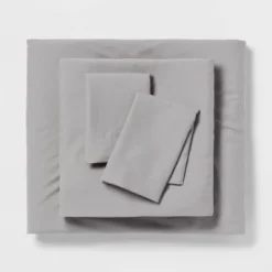 Bring comfort and style to your master suite or guest bedroom with this 5-Piece Stripe Microfiber Reversible Comforter & Sheet Set from Room Essentials™. This twin extra-long bedding set includes a microfiber comforter, pillow sham, pillow case, flat sheet and fitted sheet for a coordinated look. The bedding set features an allover gray and white stripe pattern for a cool look, and it reverses to a solid hue to instantly change the look of your space. For added convenience, the multi-piece comforter bedding set boasts a lightweight and breathable fabric for year-round use and is machine washable.