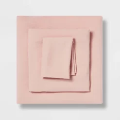 Refresh your bedscape with this Garment-Washed Microfiber Solid Sheet Set from Room Essentials™. This three-piece bedding set includes one fitted sheet, one flat sheet and one pillowcase, all in a solid hue for easy pairing with just about any comforter, pillow and decor style. Each piece is made from garment-washed microfiber fabric for a soft hand feel, along with a machine-washable design for quick and easy cleanup.